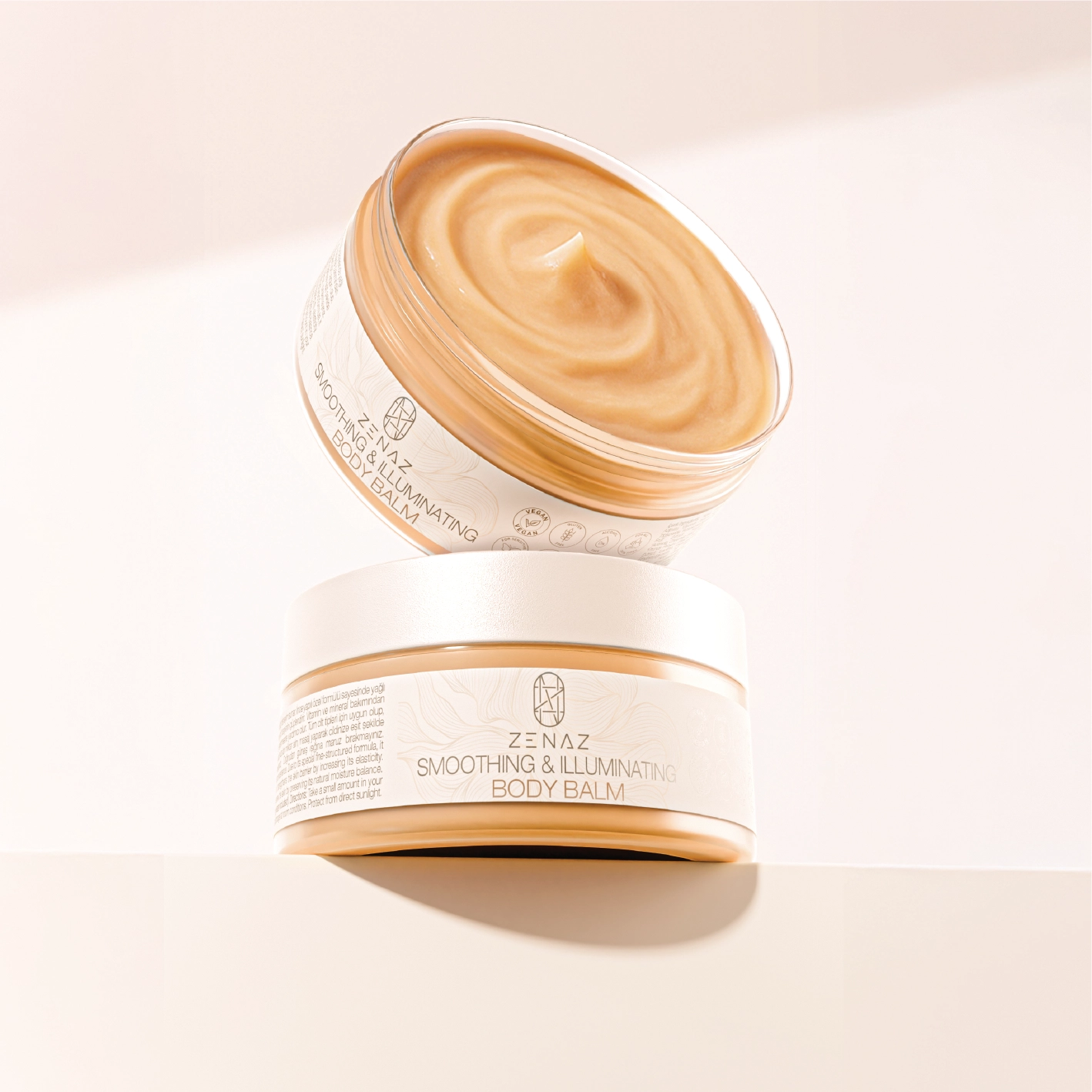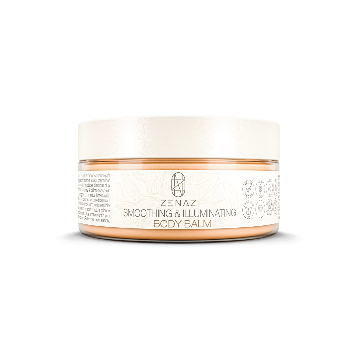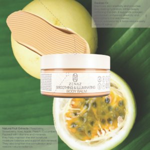 Zenaz Smoothing & Illuminating Body Balm, intensively moisturizes your skin, offering a velvety, smooth and radiant experience. Due to its special fine-struc- tured formula, it is quickly absorbed without leaving an oily feeling. While deeply softening your skin with *Baobab Oil in its content, it strengthens the skin barrier by increasing its elasticity. By the *Fruit Extracts (Raspberry, Strawberry, Kiwi, Apple, Peach, Cucumber) rich in vitamins and minerals, it helps renew the skin by preserving its natural moisture balance. It is suitable for all skin types, espe- cially it is ideal for sensitive skin.